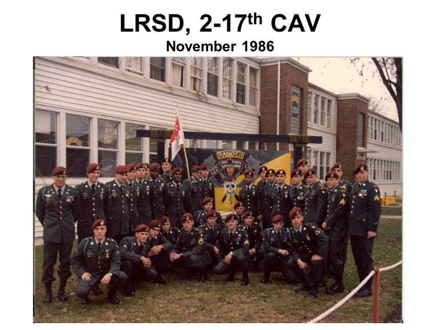 I’ve enjoyed reading the THROWBACK THURSDAY and other HARDING HISTORY posts. Over the past year, I have seen articles on how ground reconnaissance has changed in the new environment of ubiquitous surveillance under the threat of drones, as well as a couple of articles on the revival of “The Green Hell” with the Combined Jungle Operations Training Center (CJOTC) in Panama. These articles reminded me of a situation that I found myself in back in February 1986 when I was selected as the first commander for the Long Range Surveillance Detachment (LRSD) in the 101st Airborne Division (Air Assault).